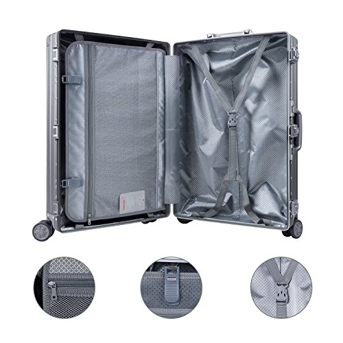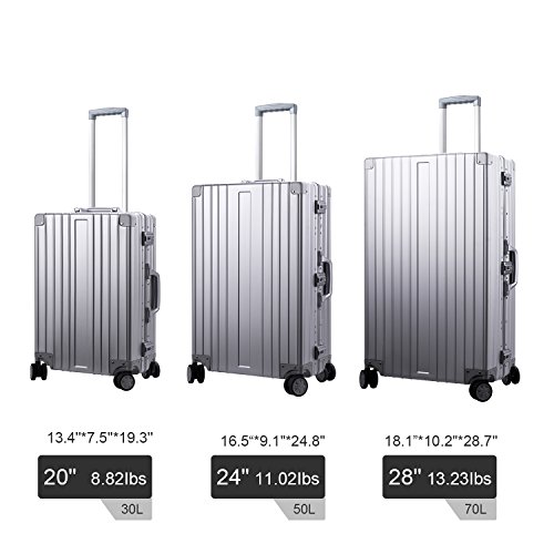 Specification: TRAVELKING All Aluminum Carry On Luggage Zipperless Hard Shell Luggage Case with TSA Lock Spinner Alloy Metal Suitcase (Silver, 20″)