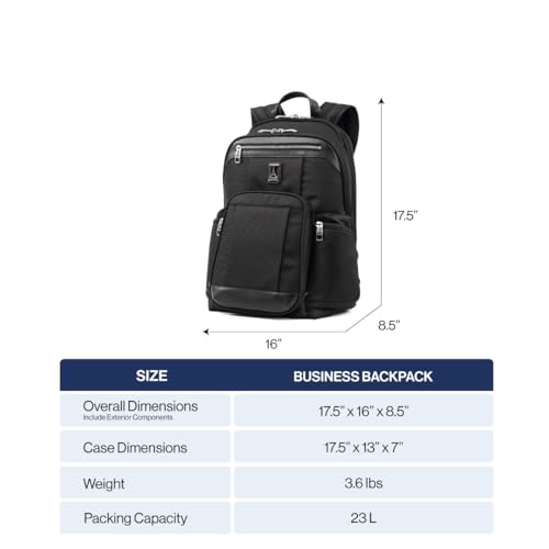 Specification: Travelpro Platinum Elite Business Laptop Backpack, Fits up to 17.5 Inch Laptop, Work, Travel, Men and Women, Shadow Black