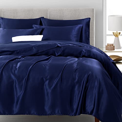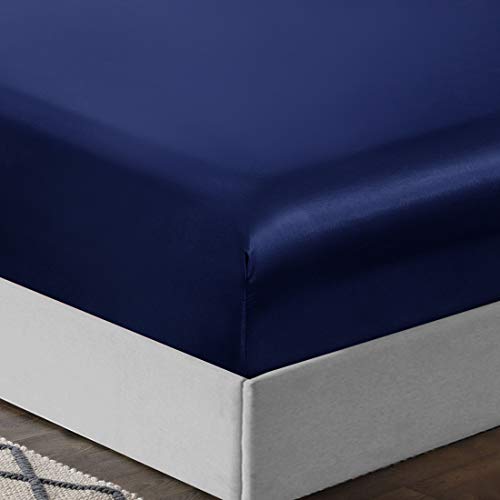 Specification: TREELY 6 Piece Satin Sheets California King Size Silky Smooth Navy Blue Sheet Set with Deep Pocket, Fitted Sheet, Flat Sheet, 4 Pillowcases
