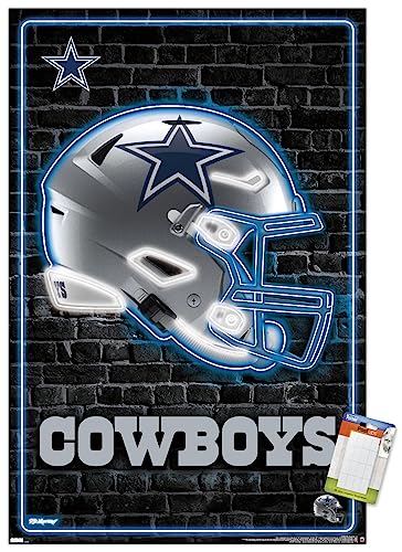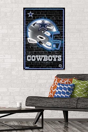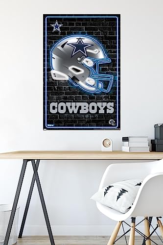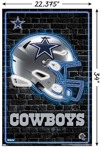 Trends International NFL Dallas Cowboys – Neon Helmet 23 Wall Poster, 22.37″ x 34.00″, Poster & Mount Bundle