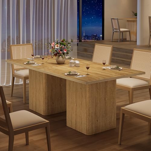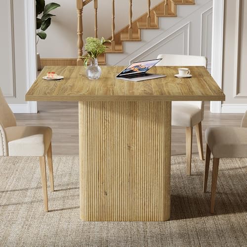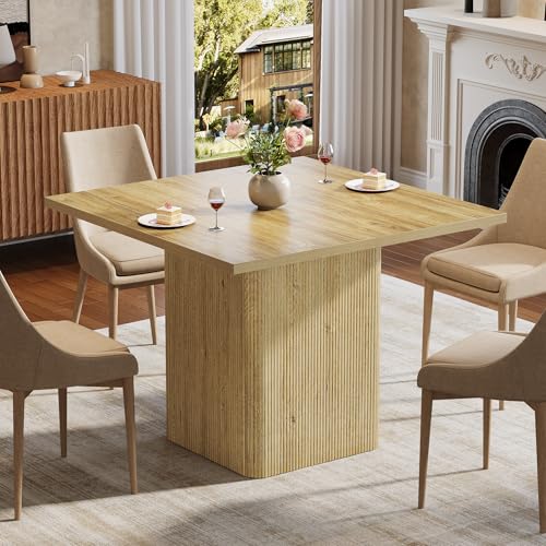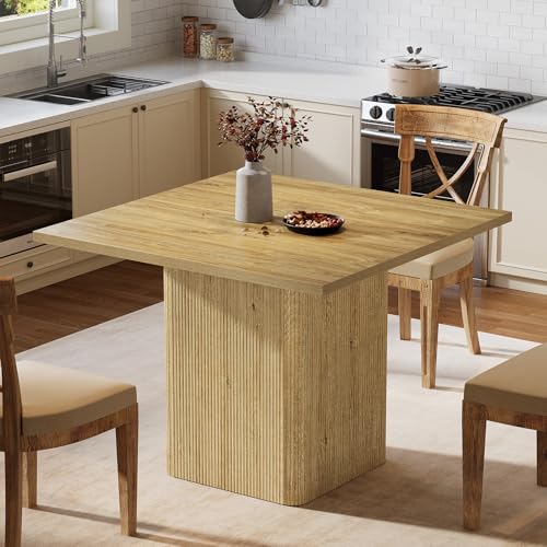 Specification: Tribesigns 39-Inch Square Dining Table for 4, Small Fluted Kitchen Table with Sturdy Pedestal, Farmhouse Wooden Dinner Table for Dining Room, Living Room, Kitchen, Small Space, Natural