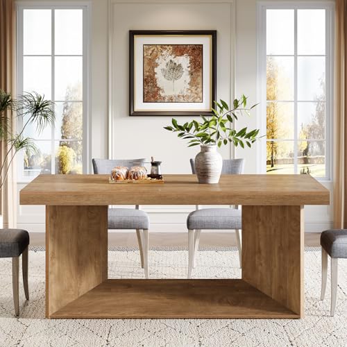 Specification: Tribesigns 63-Inch Dining Table for 4-6, Farmhouse Kitchen Table with Heavy Duty Pedestal, Rectangular Wooden Dinner Furniture for Home, Dining Room, Living Room, Brown