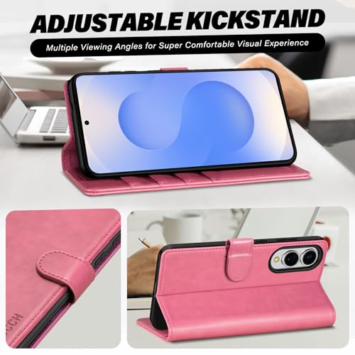 TUCCH Case Wallet for Galaxy S25 Edge, PU Leather Magnetic Kickstand [RFID Blocking] [4 Card Slots] Folio Flip Cover with [TPU Shockproof Interior Case] Compatible with Galaxy S25 Edge 6.7″, Hot Pink