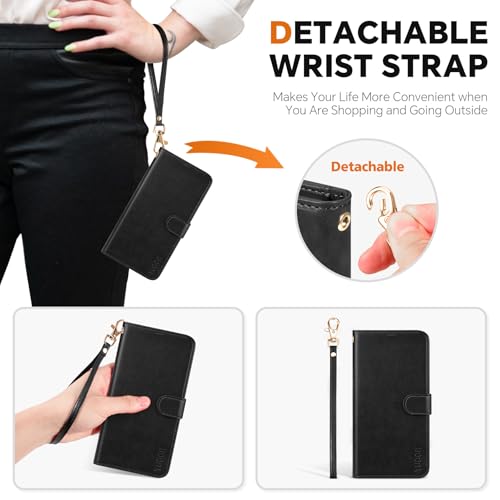 TUCCH Wallet Case for Galaxy S25 Ultra, Removable RFID Blocking [4 Card Slots] Wrist Strap Wireless Charging Kickstand PU Leather Magnetic Detachable Protective Cover for Galaxy S25 Ultra 6.9″, Black