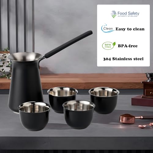 Turkish Coffee Pot Set- Coffee Maker, Briki Greek Turkish Pot with 4 Small Cups, Arabic Tea Pot, Cezve/Ibrik Coffee Pot for Stovetop(1 pot and 4 small cups)
