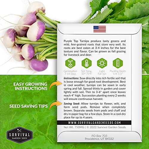 Specification: Turnip Seeds for Planting | Purple Top Heirloom Non-GMO Variety | Root Vegetable for Fall & Spring Home Gardens – Survival Garden Seeds (1 Pack)