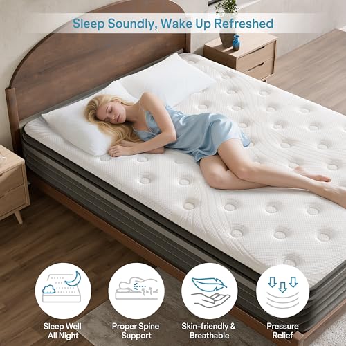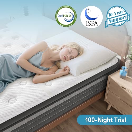 Specification: Twin Mattress, 12 Inch Hybrid Mattress in a Box with Memory Foam and Individual Pocket Springs, Medium Firm Twin Size Hybrid Mattress, Motion Isolation and Pressure Relief, CertiPUR-US