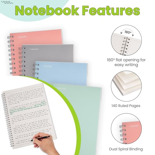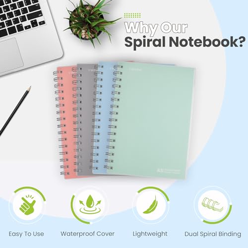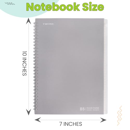 Specification: TWONE Spiral Notebook, 7″x10″, 140 line Ruled Pages, Waterproof Frosted PP Cover, Gray, Ideal for School, Office, and Personal Use