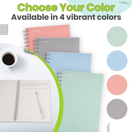 TWONE Spiral Notebook, 7″x10″, 140 line Ruled Pages, Waterproof Frosted PP Cover, Gray, Ideal for School, Office, and Personal Use