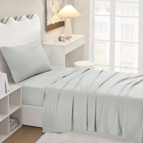 UGG Twin XL Sheet Set 3-Piece Luxury Cooling Sheets Deep Pockets Premium Bedding with 1 Pillow Sham Machine Washable, for Dorm Essentials & College Bedding, Twin XL, Mineral Green (Hedi)