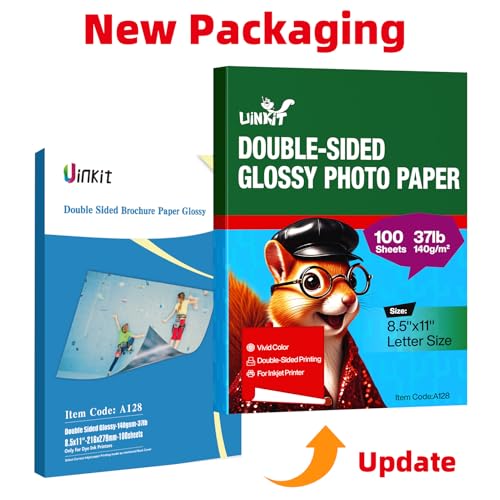 Specification: Uinkit 100 sheets Photo Paper Glossy Double Sided 8.5×11 Inkjet 37lb 140gsm Dye ink Thin Photo Picture Flyer Calendar Magazine CD Cover letter