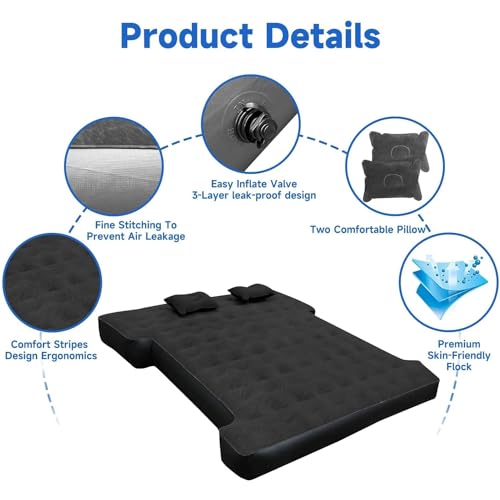 Specification: Umbrauto Air Mattress for 6-6.5ft Full Size Truck Bed, Inflatable Pickup Airbed with Pump, Tent Camping Sleeping Pad for Outdoor Travel