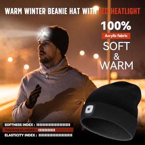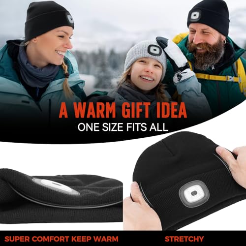Unisex Beanie Hat with Light, Rechargeable Headlight Cap, Stocking Stuffers for Men, Cool Gadget Gifts for Him, Birthday Gifts for Women, Black