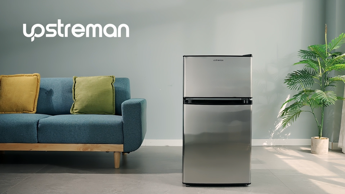 Specification: Upstreman 3.1 Cu.Ft Mini Fridge with Freezer, Double Door Small Fridge, Dorm Essentials, Adjustable Thermostat, Energy Saving, Mini Refrigerator for Office, Dorm, Bedroom, Black