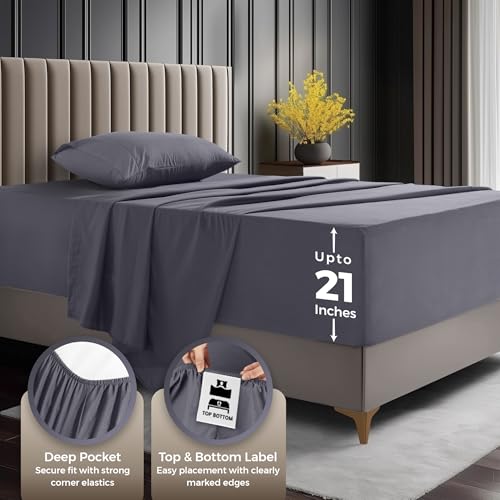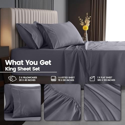 Utopia Bedding Deep Pocket King Sheet Set – Fits Mattresses Up to 21 inches – Cooling, Soft & Breathable – Oeko-TEX 4 Piece Bed Sheets (Grey)