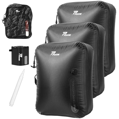 Specification: Vacuum Bags for Travel with Wireless Pump, 180° Open Zipper, IP67 Waterproof, Reusable Space Saver Compression Bags for Backpack, Suitcase, Home Storage(3 Pack + Pump)