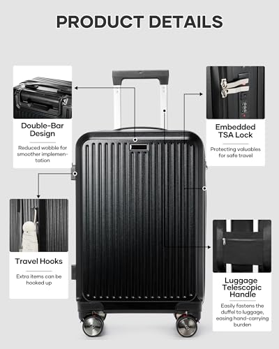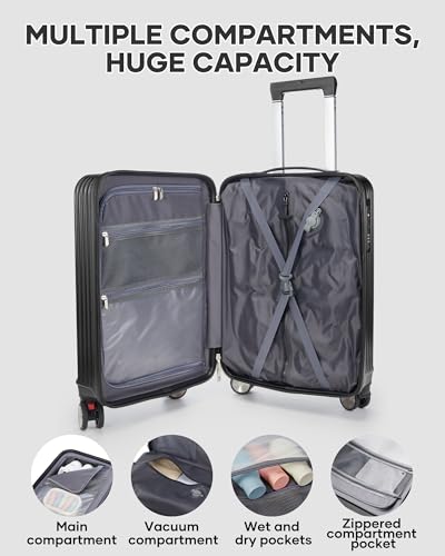 Specification: Vacuum Carry on Luggage with TSA lock for Men & Women, 20 Inch Medium Size Overhead Luggage Airline Approved,Hard Shell Rolling Suitcase with Spinner Wheels, Lightweight Travel Suitcase(Black)