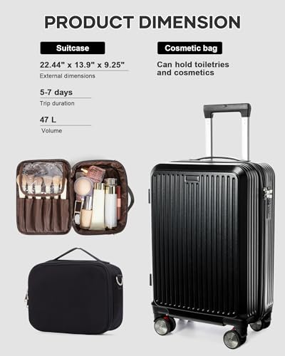 Spacious Capacity, Smart Organization Measuring 22.44″ x 13.9″ x 9.25″, this generous 50L capacity suitcase easily holds 5-7 days’ worth of essentials. It features a vacuum compression layer to save space, plus includes a dual-mode (USB rechargeable & plug-in) vacuum pump for versatile packing needs. A dedicated cosmetic carry-case is also provided, featuring specialized brush compartments to maintain bristle shape and prevent damage to makeup items from disorganized storage.