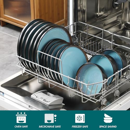 Specification: vancasso Plates and Bowls Sets, 18 Pieces Stoneware Dinnerware Sets for 6, Kitchen Dish Set Mircowave and Dishwasher Safe Dinner Set Ceramic Dishware, Sky Blue, Series AMBER