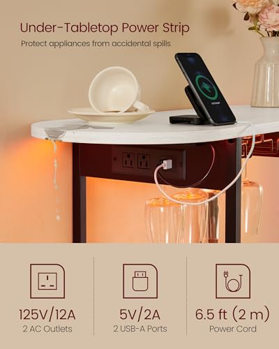 【CONVENIENT POWER OUTLETS】This coffee bar cabinet features 2 AC outlets and 2 USB-A ports, allowing you to conveniently power up an ice maker or coffee table and charge your devices. Never worry about power issues during your gatherings