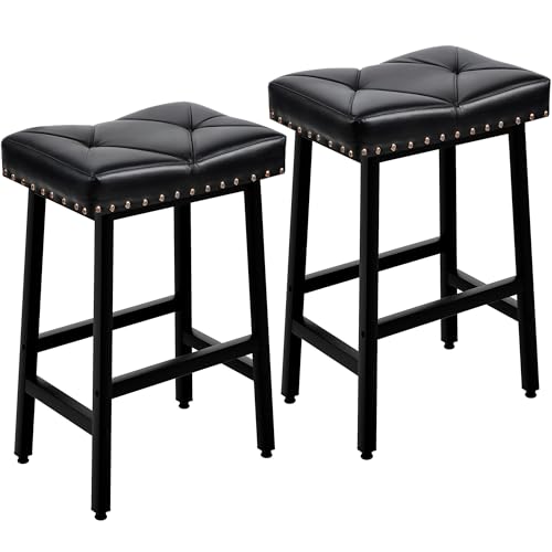 Specification: VECELO 25 inch Counter Height Stools for Kitchen Island, 3.3” Thick PU Upholstered Saddle Seats, Backless Bar Chairs with Metal Base, Black