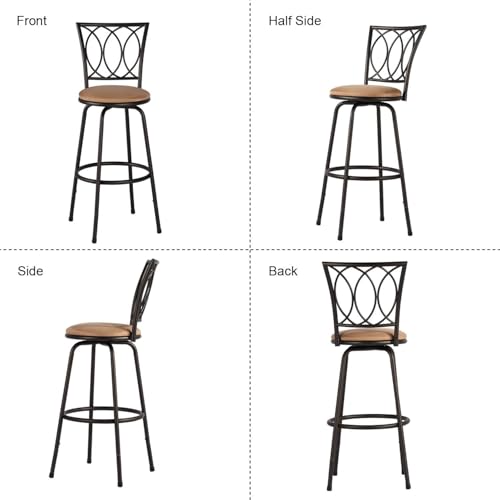 Specification: VECELO Adjustable Counter Stools, Steel Bistro Pub Chairs, Bar Stools with 360 Degree Swivel Seat Top and Comfortable Round Seat Cushions,Curved Pattern Backrest, Set of 2