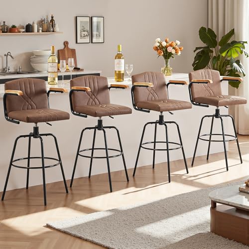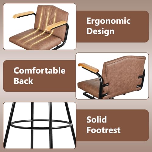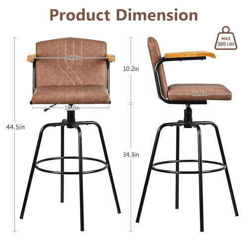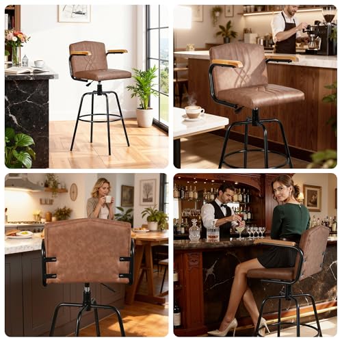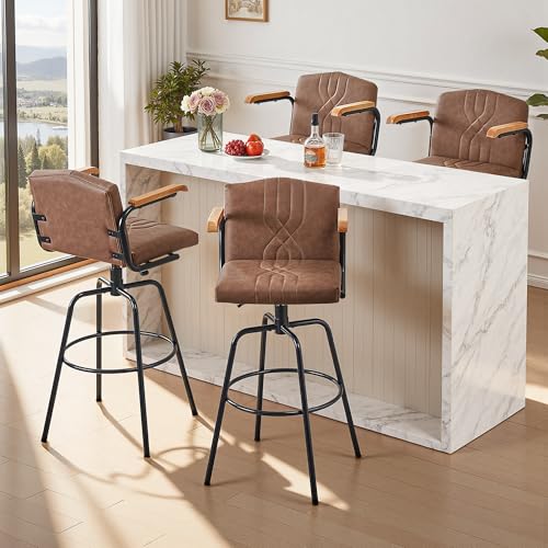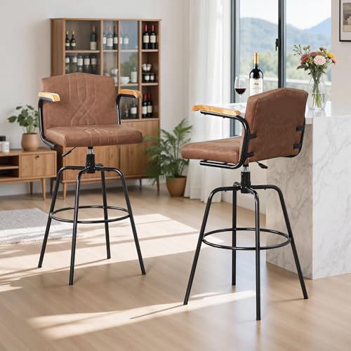 Specification: VECELO Bar Stools Set of 2, Swivel Faux Leather Bar Stools with Backs and Footrest, for Kitchen Islands, Dining Counters, Home Bars, Brown