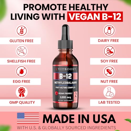 ✔️ BOOST ENERGY LEVEL with VitBoost Vegan Liquid B-12: Vitamin B12 promotes energy production by supporting the adrenal glands, red blood cell formation, and converting carbohydrates to glucose.Vitamin B12 liquid supplement and vegan b12 supplement is the fuel your body uses for energy. If you are constantly tired, this may be in result of not getting enough Vitamin B12. Stay alert and energized throughout the day by boosting your energy levels with B12.