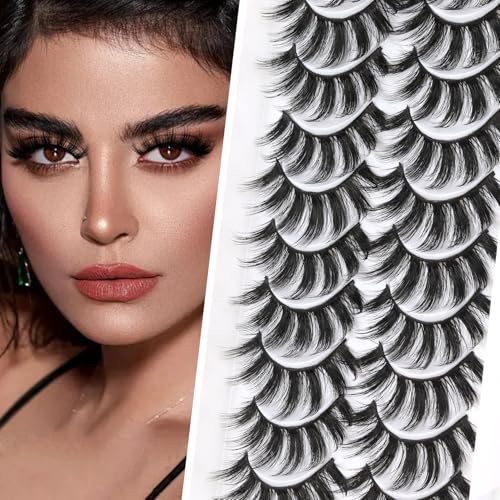 Veleasha Lashes Fluffy Wispy Faux Mink Eyelashes Criss-cross False Lashes 10 Pairs Pack Fake Eyelashes for Women (3D07)