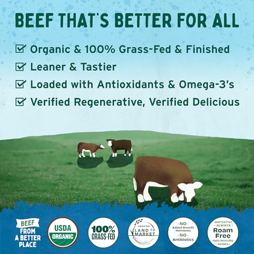 ORGANIC, GRASS-FED, REGENERATIVE: Our ground beef burger patties are USDA Organic, 100% grass-fed & finished, support regenerative farms, verified by Land to Market, 100% pasture-raised, free range, humanely raised, with no feedlots EVER. Non-GMO and never contain antibiotics or added growth hormones. Always fresh, never frozen.