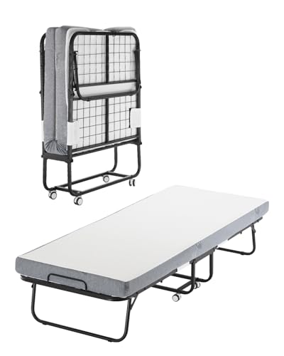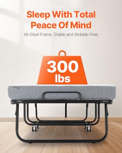 VEVOR 31 in x 75 in Folding Bed with 4 in Mattress, Twin Size, White, Metal Frame & Memory Foam Mattress, Portable Rollaway Bed, 300 lbs Weight Capacity, Adult, Guest