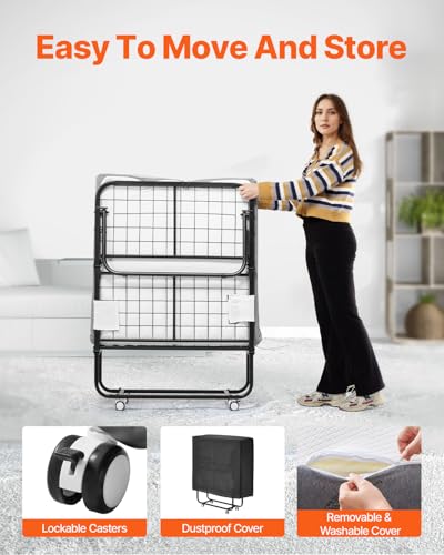 Easy to Fold and Store: This rollaway bed is convenient and quick to use. One person can easily fold and unfold it. It expands to a large size but folds to a compact size, making it easy to store in a corner without taking up much space. You can also use the included dust coverlet to shield it from dirt.