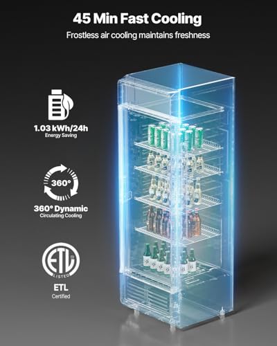 Fast Cooling: Our display refrigerator upright fridge cooler boasts a powerful compressor and 7-level temperature control (32ºF-50ºF / 0℃-10℃). With an air cooling system, it ensures uniform cooling, chilling your drinks in 45 minutes