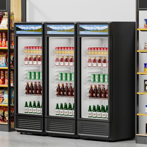 Exceptional Display Performance: Our commercial merchandiser refrigerator delivers double-layer, high-transparency glass that keeps out external heat while letting you see the inside without opening the door. Plus, the LED lighting with an independent switch and LED light box with custom stickers on top create an eye-catching lighting experience, showcasing your beverages beautifully. Note: Please let the unit rest for at least 6 hours and then power on after receiving it