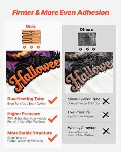 Superior Heat Pressing: The 15 x 15 in heat press features 70% higher pressure than automatic models, surpassing even traditional ones. Its new high-stability design ensures even pressure distribution for superior results and clearer long-lasting patterns