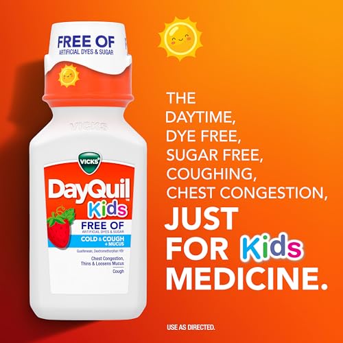 Specification: Vicks Kids DayQuil & NyQuil Cold & Cough Relief Liquid Co-Pack, Free of Artificial Dyes & Sugar, Multi-Symptom Relief of Cough, Sneezing, Runny Nose, Mucus, and Chest Congestion, for Ages 6+, 2x6oz