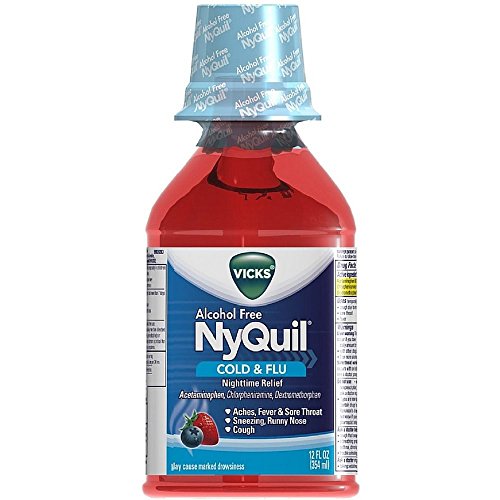 Vicks NyQuil Alcohol Free Cold and Flu Nighttime Relief Liquid Medicine provides the same fast, powerful relief you expect from Vicks NyQuil in an alcohol-free formula. When cold symptoms keep you up, turn to Vicks NyQuil Alcohol Free Cold and Flu medicine to help you get the rest you need. Temporarily relieves common cold and flu symptoms. Active Ingredients: Acetaminophen 650 mg, Dextromethorphan HBr 30 mg, and Doxylamine Succinate 12.5 mg. NDC Code: 69423-791-12