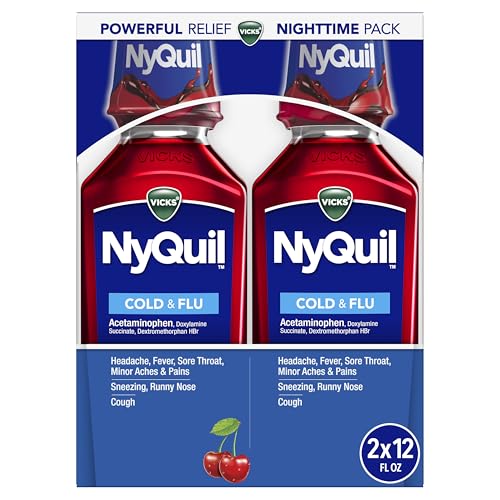 Vicks NyQuil, Nighttime Relief of Cough, Cold & Flu Relief, Sore Throat, Fever, & Congestion Relief, Cherry Flavor, Twin Pack, 12 FL OZ
