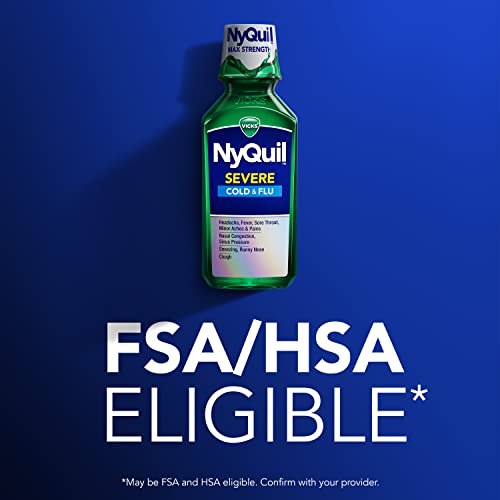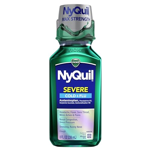 Vicks NyQuil SEVERE Cold and Flu Relief Liquid Medicine, Maximum Strength, 9-Symptom Nighttime Relief For Headache, Fever, Sore Throat, Nasal Congestion, Sinus Pressure, Runny Nose, Cough, 8 FL OZ