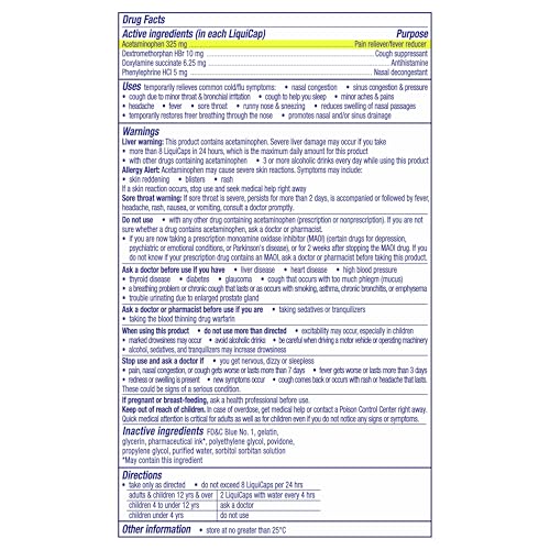 Multi-Symptom Relief: It targets multiple cold and flu symptoms including headache, fever, sore throat, minor aches and pains, sneezing, runny nose, and cough.