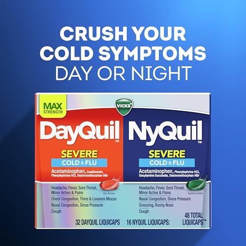 Vicks NyQuil Severe Cold, Flu, & Congestion Medicine, 24 Liquicaps, Maximum Strength, 24Count