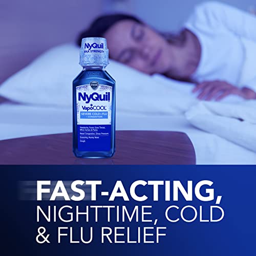 Vicks NyQuil VapoCOOL SEVERE Cold, Flu + Congestion Liquid Medicine, Max Stregth 9-Symptom Nighttime Relief, 12 FL OZ