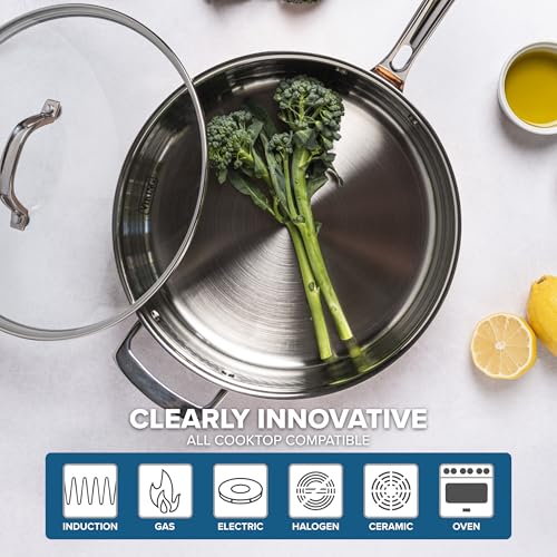VERSATILE AND EFFICIENT COOKING: Our copper cook ware sets achieve perfectly uniform heating and exceptional temperature control, and also heat up and cool down quickly, making them perfect for all of your meal prep needs! Our pots and pans feature vented glass lids to prevent boil-overs, and are oven safe to 400 degrees F (204 degrees C). Our kitchen ware sets are compatible with all cooking surfaces including gas, grill, and electric, and are safe up to 600 degrees F (315 degrees C)