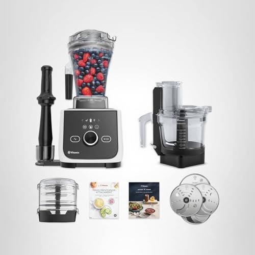 The Vitamix Ascent X4 Gourmet SmartPrep Kitchen System combines a professional-grade blender and a 12-cup Food Processor Attachment in one convenient package. With a 2.2-horsepower motor, Ascent X4 effortlessly breaks down the toughest ingredients. The 48-ounce BPA-free container is equipped with laser-cut, stainless-steel blades to deliver consistent results. Take control of recipes with intuitive Variable Speed Control and Pulse Function or enjoy the convenience of five Blending Programs. For easy operation, this blender features intuitive touch buttons and a digital timer. Designed to precisely chop, mince, knead, mix, shred, and slice ingredients, the 12-cup Food Processor Attachment includes a multi-use blade and two reversible slice/shred discs, a julienne disc, and a veggie stick disc to simplify food prep. SELF-DETECT technology lets you add compatible containers and attachments to build a customized blending system. Vitamix offers a 10-Year Limited Warranty for the Ascent X4 and 3-Year Limited Warranty for the 12-Cup Food Processor Attachment. Vitamix blenders last up to 10x longer than an average blender. (Data gathered through a Vitamix study which compared Vitamix Ascent and Explorian Series blenders against a select blender model determined to be average. Analysis completed in August of 2022. Food Processor Attachment not included in test.)