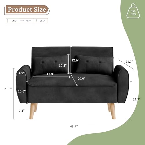 Specification: Vongrasig 47″ Small Modern Loveseat Sofa, Mid Century Linen Fabric 2-Seat Sofa Couch Tufted Love Seat with Back Cushions and Tapered Legs for Living Room, Bedroom and Small Space (Black)