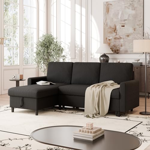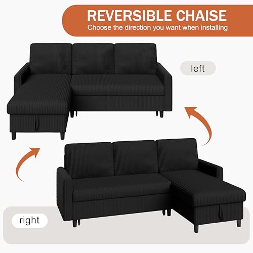 Specification: Vongrasig Pull Out Couch, Convertible Sleeper Sofa Bed with Storage, L-Shaped Sofa Bed with Storage Chaise Linen Fabric for Living Room, Apartment, Small Space, Black