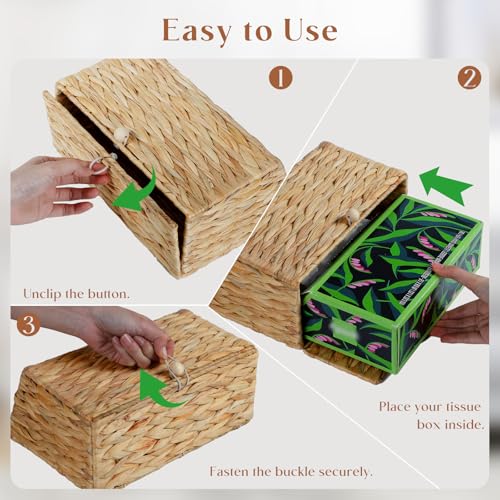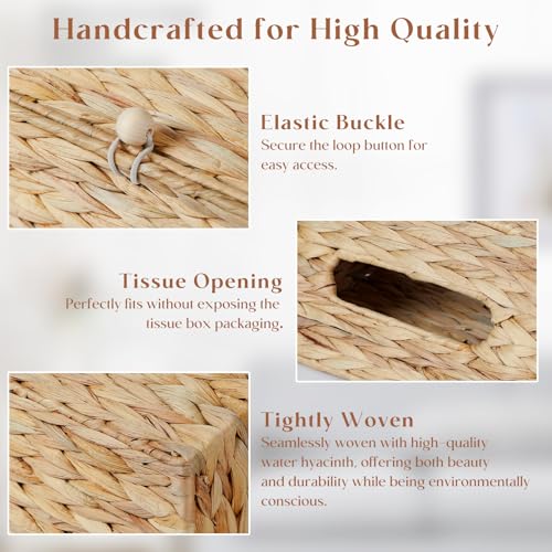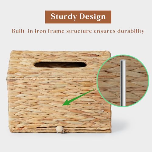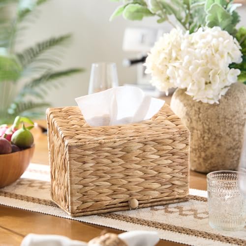 Water Hyacinth Hand Towel Box Cover Compatible with Disposable Paper Hand Towels, Wicker Paper Towel Holders, Hand Towel Holder for Bathroom, Car, Tabletop, by YANGQIHOME