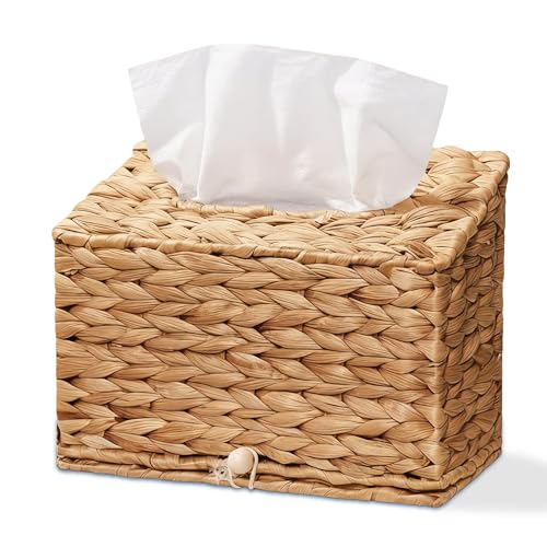 Water Hyacinth Hand Towels Box Cover for Kleenex Disposable Paper Hand Towels, Handwoven Towel Holder, Wicker Tissue Box Cover for Bathroom, Bedroom, Office, Tabletop, Kitchen