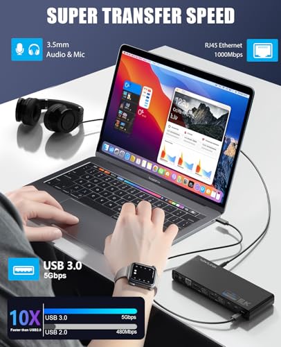 Specification: WAVLINK Pro Dual 4K@60Hz Universal Docking Station | USB 3.0/USB-C Laptop Dock for Mac & Windows | 2 HDMI/DP Monitors, Gigabit Ethernet, 6 USB 3.0 | Home Office & Multi-Screen Productivity.