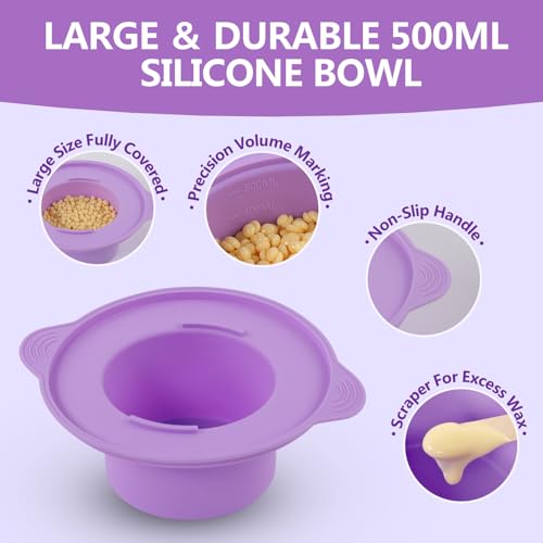 MESS-FREE & PORTABLE SILICONE WAX POT: This 500ml pot features a wide rim and a non-stick surface for hassle-free cleanup. Simply let the wax cool and peel out the solid block. It’s also portable and collapsible for easy travel storage. For use without a wax heater, simply submerge the flexible pot in a container of hot water (160°F-170°F) for about 10 minutes to melt the wax beads.